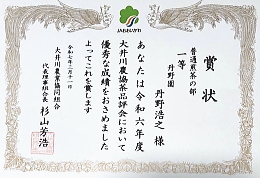 | 平成18(2006)年 | ・第60回全国茶品評会 一等 日本茶業中央会長賞 |